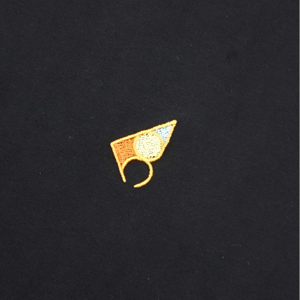 胸元のワンポイントロゴは、刺繍されていて、シンプルながらもスタイリッシュで洗練された印象。